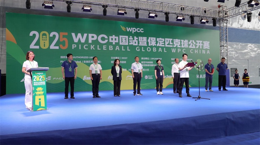 6月18日-6月22日,2025WPC中国站暨保定匹克球公开赛在“奥运冠军之城”河北省保定市成功举办。(WPC中国站暨保定匹克球公开赛开幕式现场) 作为首个落地保定的匹克球国际赛事,本次比赛吸引来自全球17个国家及中国各省(市、区)和香港、台湾地区的近400名匹克球职业运动员、匹克球爱好者参加,共襄全球匹克球交流竞技的盛会。比赛分为专业组和大众组,涵盖男单、女单、男双、女双、混双五大项,按年