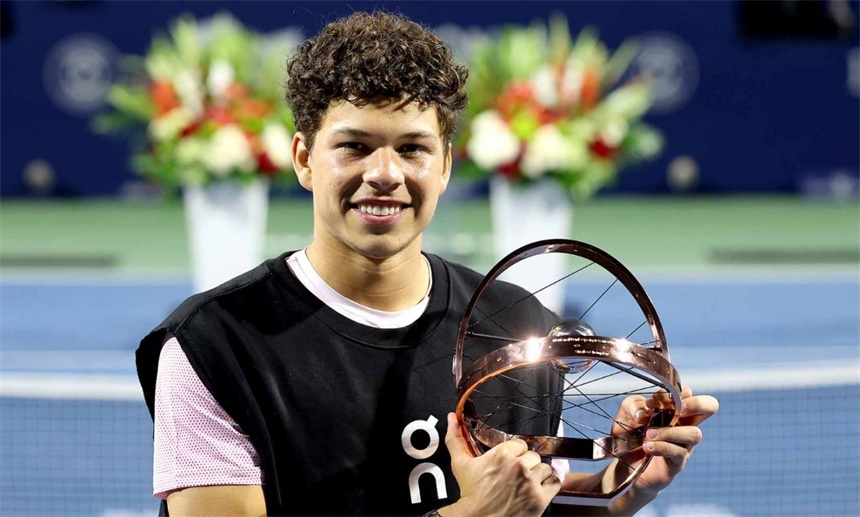 谢尔顿在加拿大公开赛捧起冠军奖杯 8月7日(路透社)——周四在多伦多举行的加拿大公开赛上,美国四号种子本·谢尔顿在先丢一盘的情况下奋力拼搏,以6-7(5)6-47-6(3)击败俄罗斯11号种子卡伦·哈恰诺夫,夺得他的第一个ATP大师赛1000冠军。 这位世界排名第七的选手在本周表现出色,击败了意大利13号种子弗拉维奥·科博利、澳大利亚9号种子亚历克斯·德米纳尔和美国2号种子泰勒·弗里茨