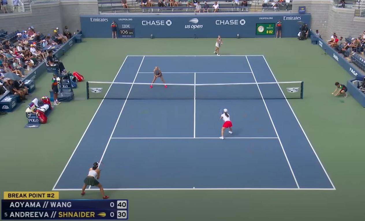王雅繁/青山修子与安德列娃/施内德比赛现场中国网球女子职业球员王雅繁在美网比赛现场 9月1日-2日,美网女双第四轮比赛结束,四对包含中国选手的组合均告负,无缘八强。 9月1日的比赛中,12号种子张帅/亚历山德洛娃以3-6、4-6遗憾负于大威廉姆斯/费尔南德斯。徐一璠/杨钊煊与巴博斯/斯特凡尼激战三盘,最终以1-2惜败。王雅繁/青山修子以5-7、2-6不敌安德列娃/施内德。 9月2