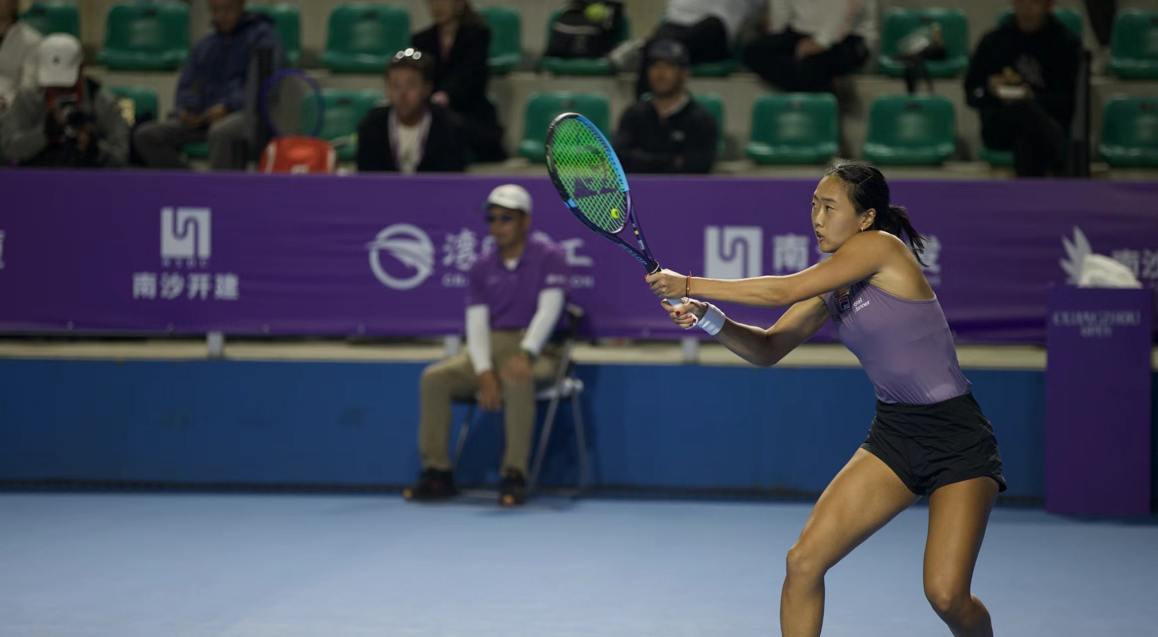 10月24日,2025年广州国际女子网球公开赛结束了女单四分之一决赛的争夺,张帅和三位华裔球员孙璐璐、李安、刘婧文包揽四强!10月25日,本届广网将展开单双打半决赛的争夺,欢迎来到南沙国际网球中心,见证单双打决赛阵容的产生! 两届赛会冠军张帅继续坐镇夜场,迎战美国名将沃利内茨,虽然在第二盘浪费了发球胜赛局被对手拖入决胜盘,决胜盘又浪费了一个发球胜赛局和连续两个赛点,但最终她还是以7-6(5)