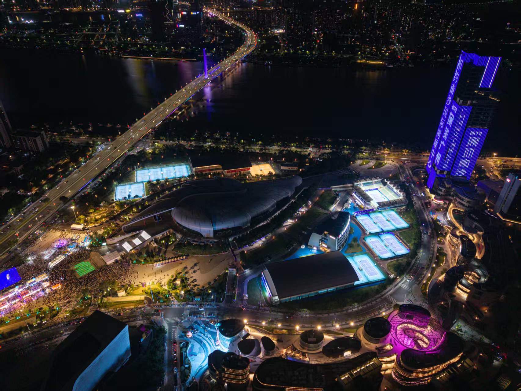 2025广州国际女子网球公开赛夜景灯光秀美图赏析。图片来源:广网官方供图