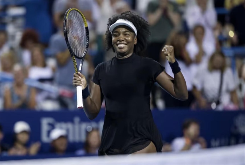 (大威廉姆斯在进行赛后庆祝) 维纳斯·威廉姆斯 (Venus Williams)重返巅峰,以 6-3、6-4 的比分淘汰美国选手佩顿·斯特恩斯 (Peyton Stearns),打入华盛顿公开赛 16 强。 45岁的威廉姆斯成为自 2004 年 47 岁的玛蒂娜·纳芙拉蒂洛娃 (Martina Navratilova) 在温布尔登网球公开赛第一轮夺冠以来,在 WTA 巡回赛中赢得单打比赛年龄最
