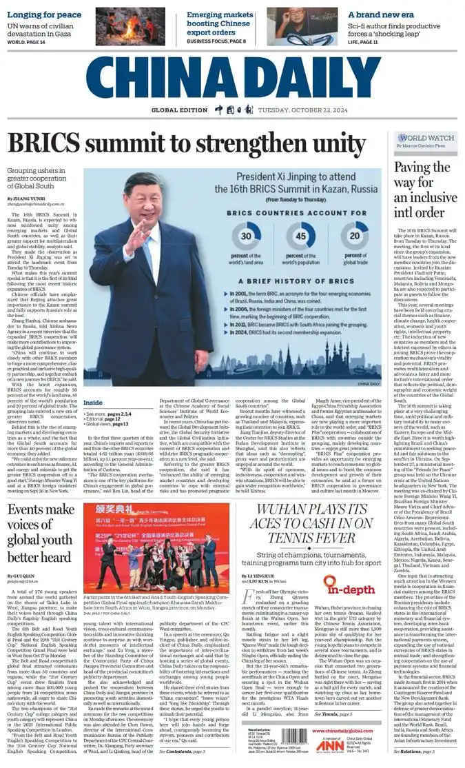 10月22日,《中国日报》头版转二版整版刊登了《Wuhanplaysitsacestocashinontennisfever》。武汉浓厚的网球文化土壤,以其独特的魅力和日益完善的体系,培育出了无数对网球充满热爱的学子们,为他们打开了通往梦想的大门。 从李娜到郑钦文,冠军光辉为新一代的青春励志故事点亮了场灯,她们的激情、坚韧和对未来的憧憬,激起了一批批少年对网球的热爱和追求。这里让我们相信,每
