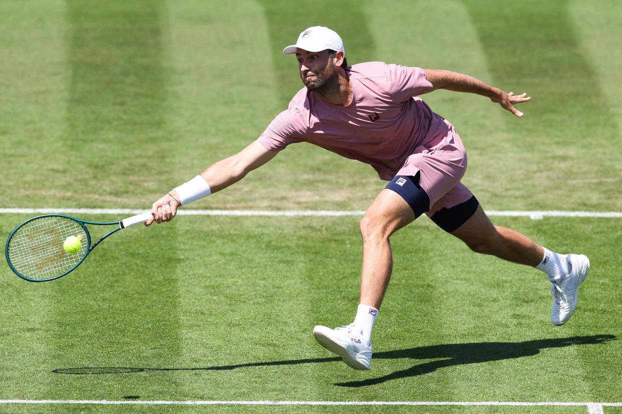 6月23日,哈利斯在比赛中回球。新华社/法新